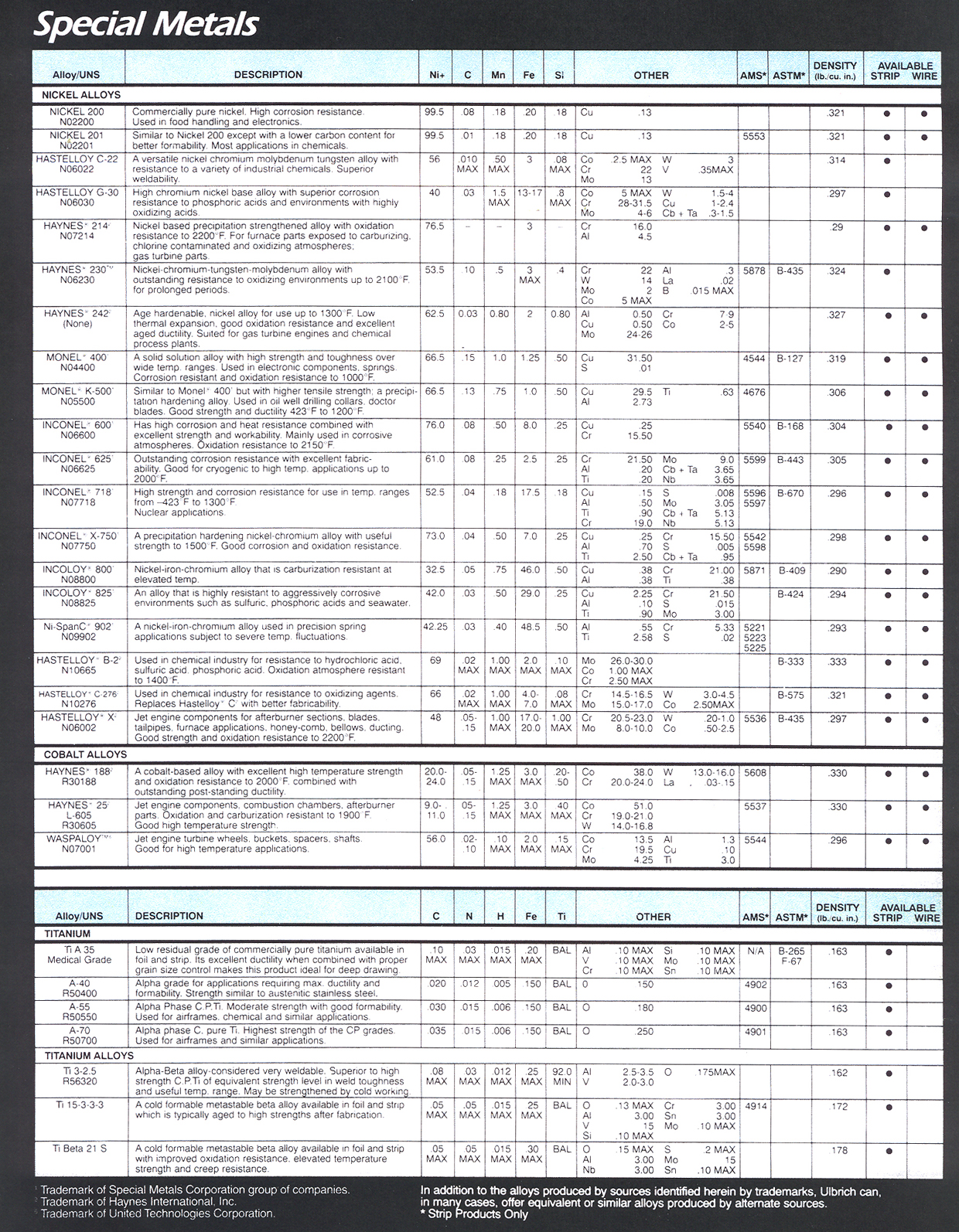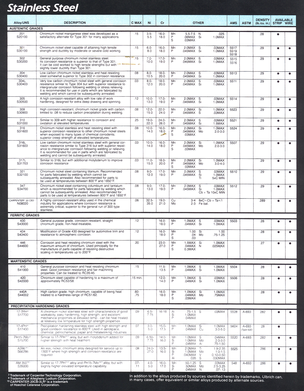Además ofrecemos una lista de los aceros con los que GSA trabaja y su composición química: